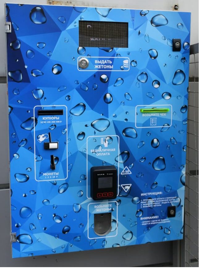 Аппарат по продаже жетонов автоматизирован на базе программируемого логического контроллера ОВЕН ПЛК110[М02] и позволяет приобретать жетоны для использования в терминалах моек самообслуживания, принимает купюры, монеты, бесконтактные карты (возможна оплата и с помощью мобильного телефона).