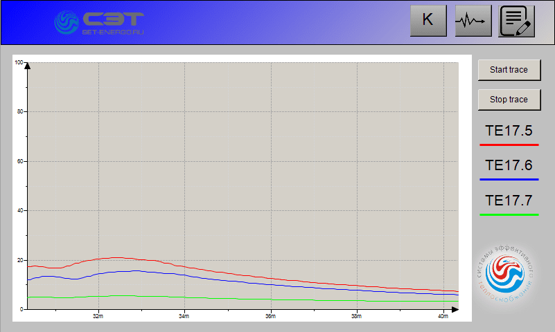- Поддержание постоянного протока через котлы с помощью трехходового клапана, управляемого устройством ОВЕН ТРМ212.