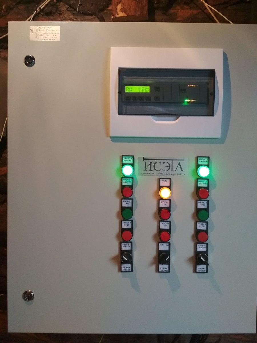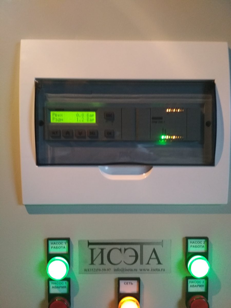 Особенностью системы является возможность поддерживать постоянное давление в системе водоснабжения в автоматическом режиме при отказе аналогового датчика, по сигналу реле давления.