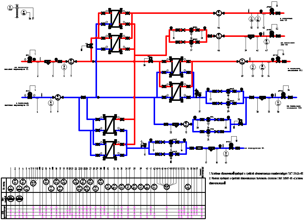 Функциональная схема автоматизации типового ЦТП (рис. 1) включает системы автоматического регулирования технологических параметров отопления и ГВС.