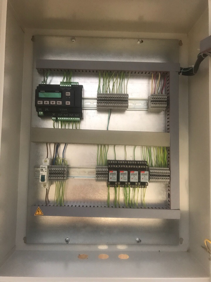 В систему очистки сточных вод встроен подпитывающий резервуар, уровень в котором отслеживается с помощью регулятора уровня жидкости ОВЕН САУ-М7Е, находящемся в шкафу управления одним из фильтров, и трех кондуктометрических датчиков уровня ОВЕН ДУ (3 уровня).