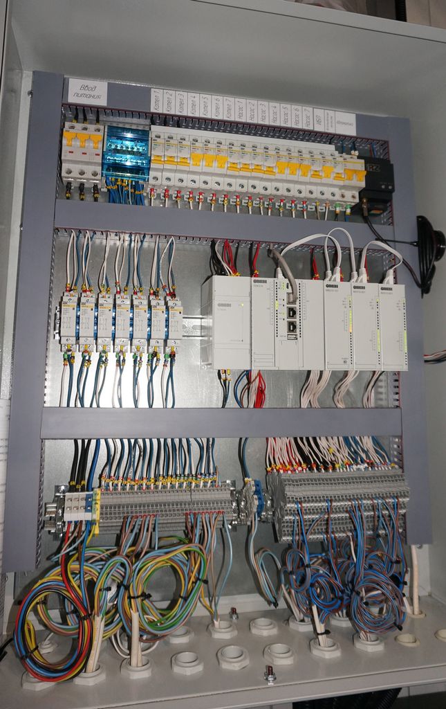 Автоматизированную систему щита ЩАК1.1 образуют средства ОВЕН:Для управления водогрейными котлами были изготовлены и установлены четыре щита ЩАК1.1 – по одному на каждый котел (рис. 1). Система управления реализована на базе программируемых логических контроллеров ОВЕН ПЛК100. Остальное оборудование (насосы, регулирующие и подпиточные клапаны, клапан-отсекатель газа) управляется с отдельного щита управления общекотельнымоборудованием. Основу управления составляет программируемый логический контроллер ПЛК110-220.60.Р-М.