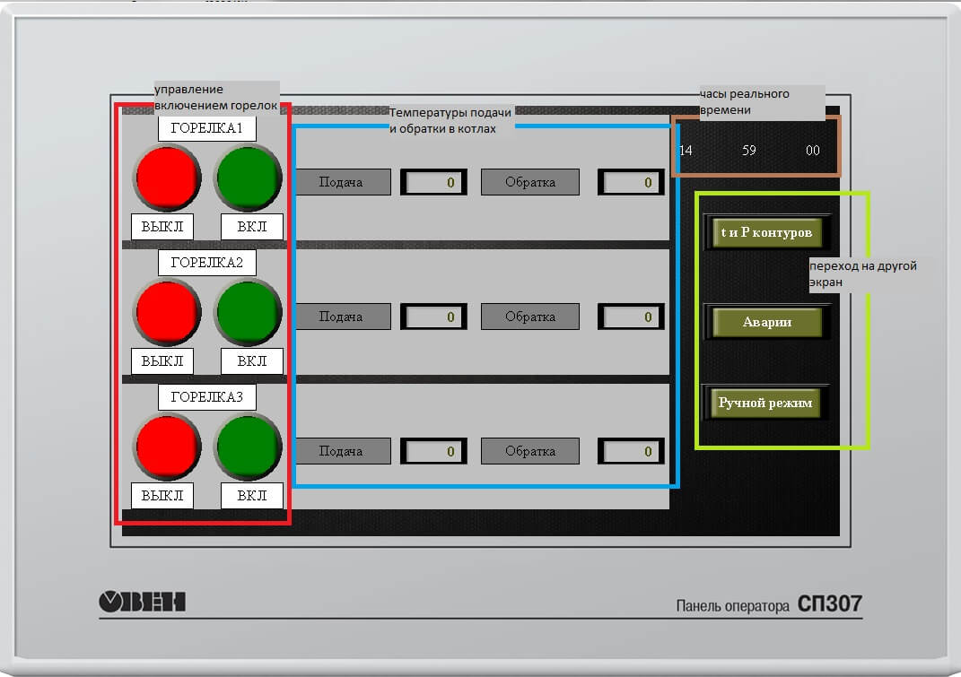 Настроечные параметры системы автоматизации-диспетчеризации газовой котельной (временные интервалы, телефонные номера операторов и т.п.) задаются с панели оператора.