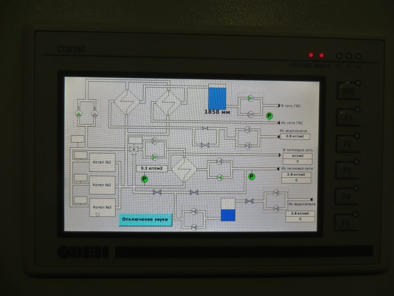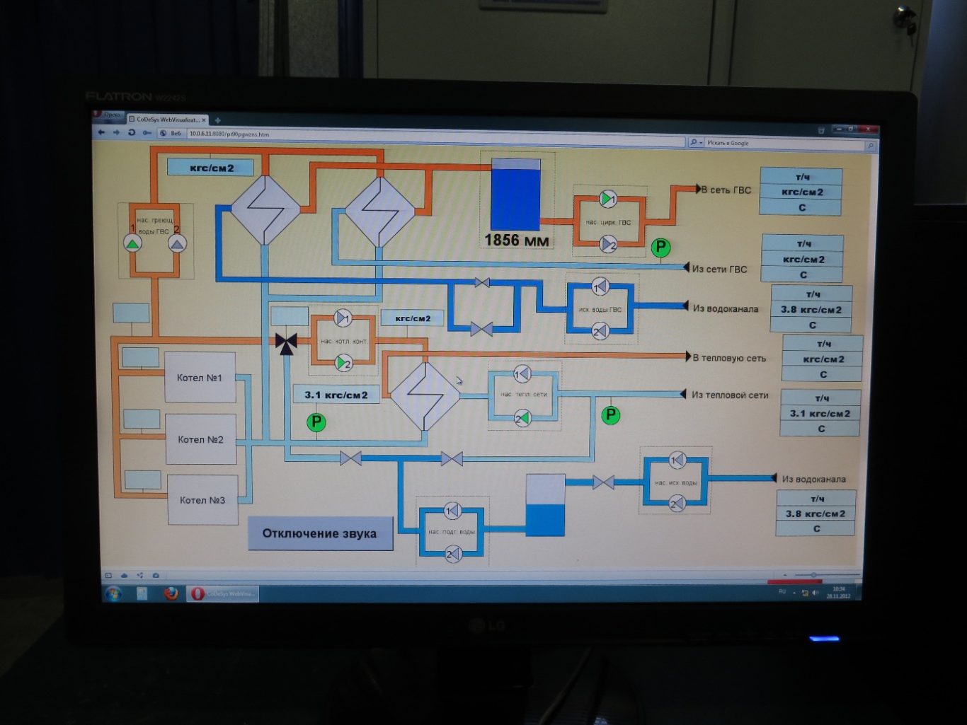 Визуализация процесса работы котельной отображается на панельном контроллере СПК207, а так же на ПК установленном в котельной при помощью WEB-визуализации. Производить контроль и управление технологическими процессами можно как с ПК, так и с СПК207. Так же контролировать и управлять работой котельной можно из любой точки, где есть сеть Internet.