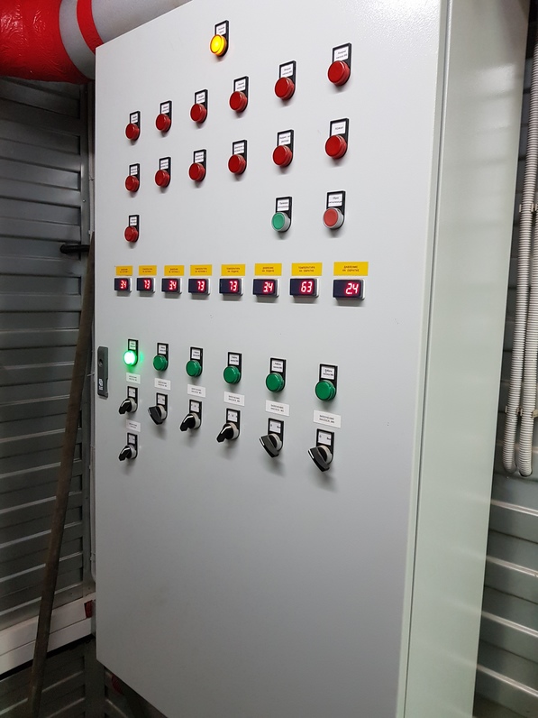 В основе системы управления — программируемый контроллер ОВЕН ПЛК160, модули ввода-вывода линейки ОВЕН Мх110, панели оператора ОВЕН СП307 и СП310, программируемый контроллер ОВЕН ПЛК100, Modbus-индикаторы ОВЕН СМИ2.
