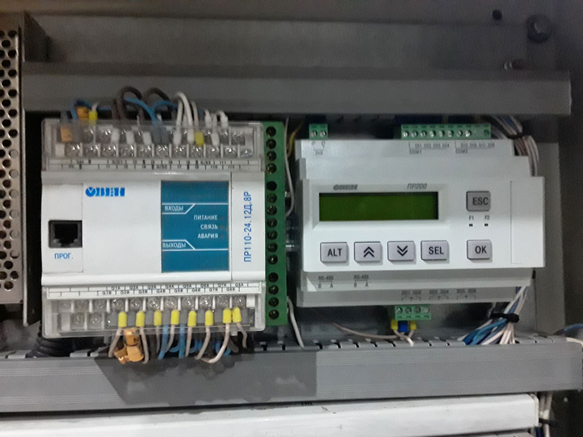 Для станка «Гранит» использовалось программируемое реле ОВЕН ПР200 и панель оператора ОВЕН ИП320, на базе которых реализовано автоматическое вычисления размера кирпича, а также непрерывное прессование кирпича с одинаковым размером готовой продукции без вмешательства оператора.