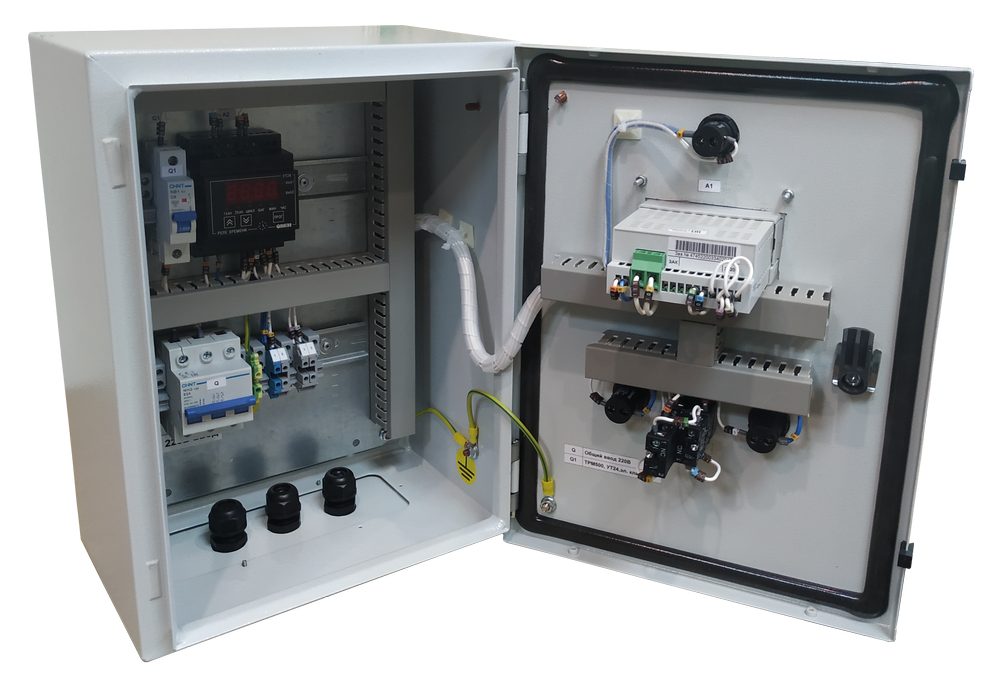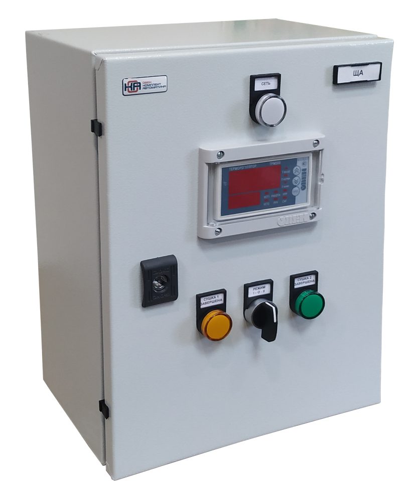 Щит автоматики используется для управления двухступенчатыми температурными режимами в сушильных камерах.