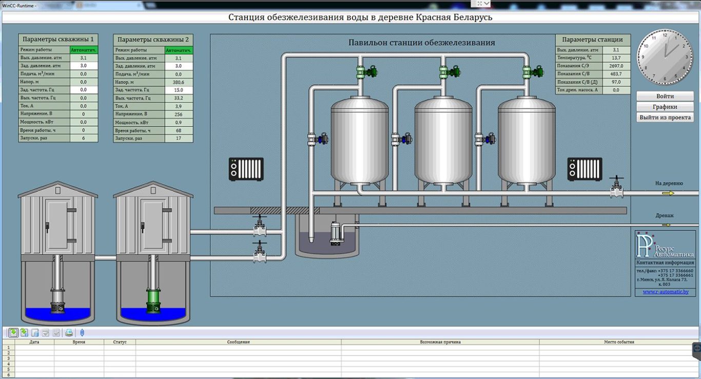 Автоматизированная система управления предназначена для оперативного контроля и управления процессом обезжелезивания воды.