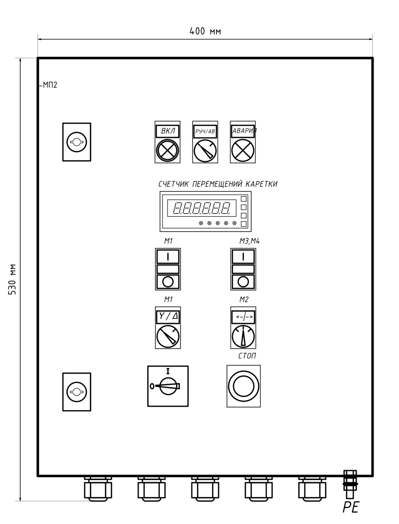 - Элементы управления и индикации на двери ШУ (ПУ).
