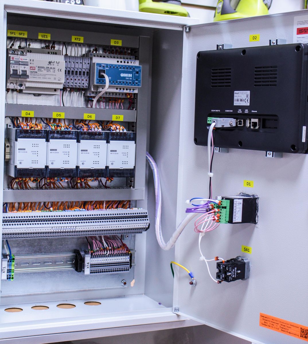 ПЛК собирает сигналы температуры с полок, охладителя и продукта. Также получает данные по глубине разряда вакуума. На основе этих данных он управляет температурой полок подогрева продукта, поддерживая идеальный баланс для наиболее эффективного водоизвлечения из продукта. Также ПЛК управляет холодильным компрессором, чтобы удерживать низкую температуру на испарителе.