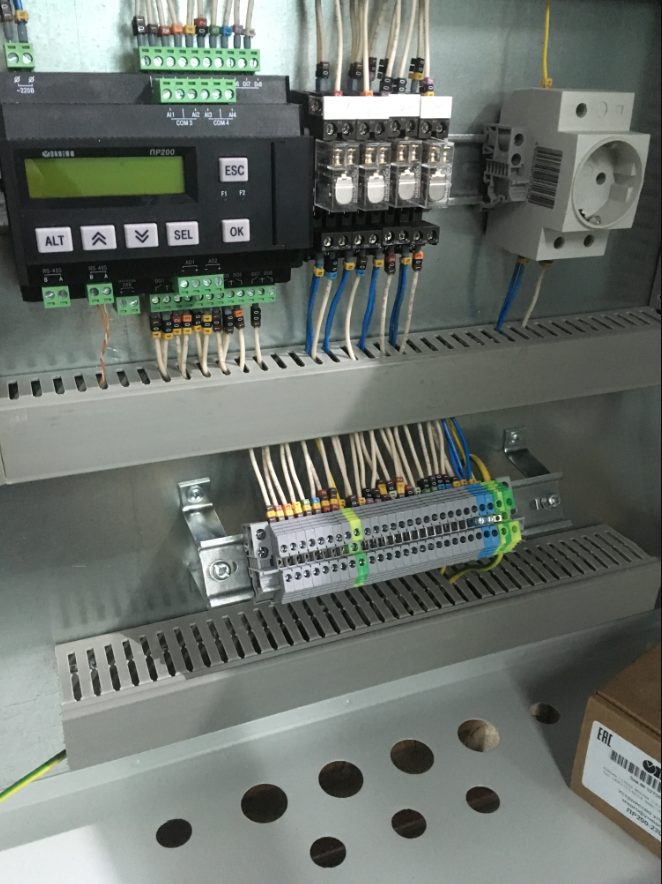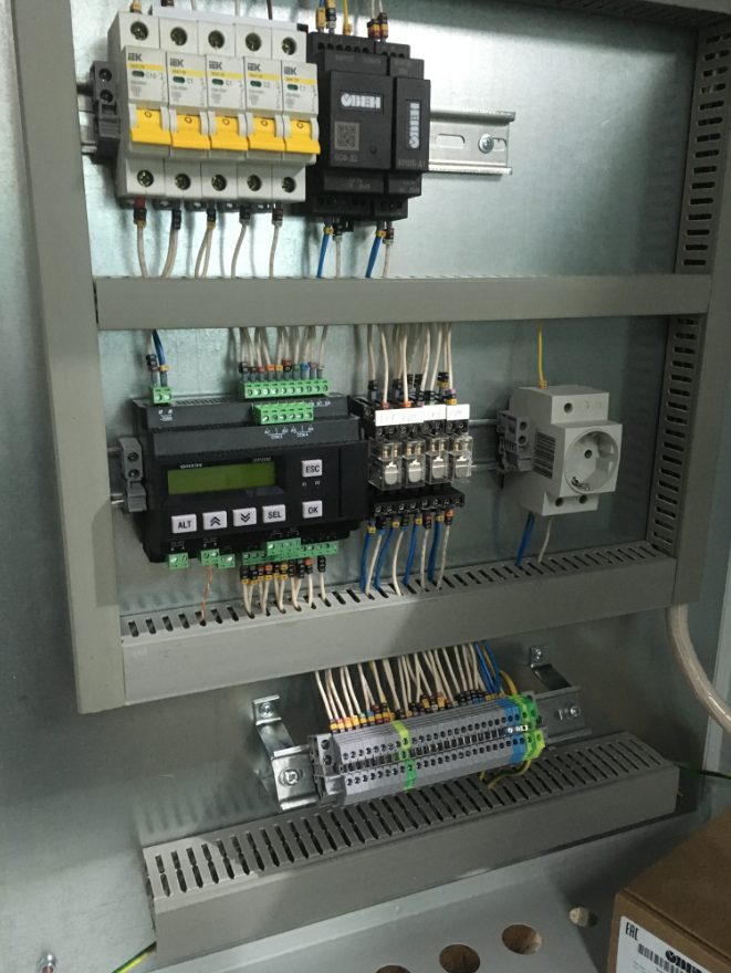 Автоматический розжиг котла реализован на программируемом реле ОВЕН ПР200 с контролем за состоянием параметров и управлением горелкой.