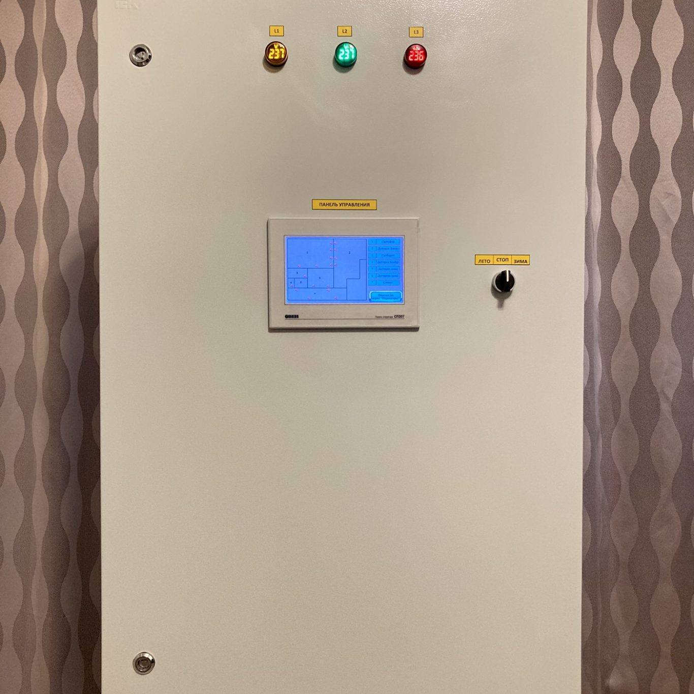 На базе оборудования ОВЕН был создан щит со следующими режимами: зима/лето, рабочее/не рабочее время, погодозависимое управление, работа по расписанию, контроль исправности оборудования.
