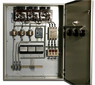 Блок управления нагревом с регулировкой мощности (далее «блок») предназначен для управления температурным режимом в 3-фазных электрических печах мощностью до 100 кВт. В блоке предусмотрена возможность регулировки выходной мощности (способ регулирования – фазоимпульсный или числом полупериодов). Контроль напряжения осуществляется с помощью встроенных вольтметров, данные по току на каждой фазе передаются через преобразователи для внешней регистрации.