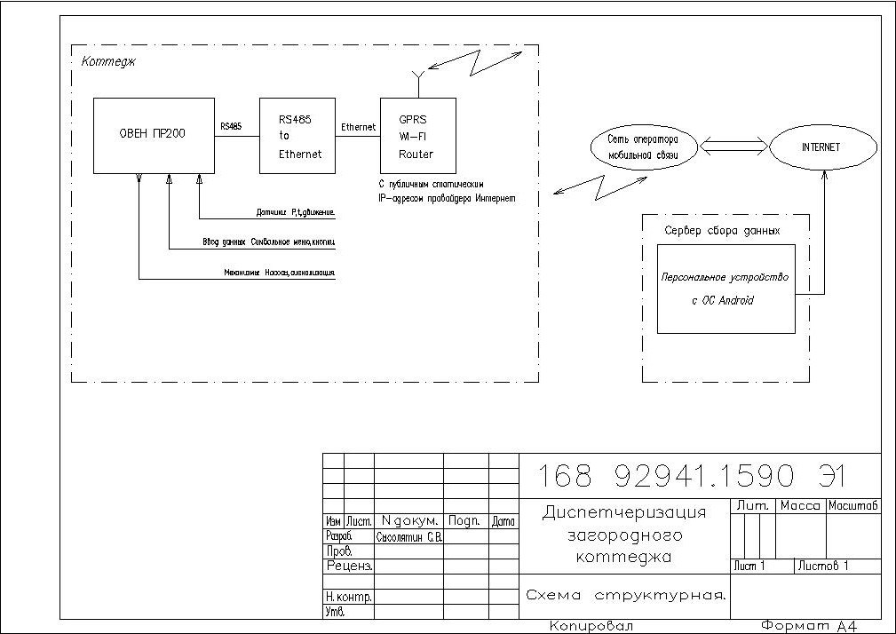 Система выполняет управление и мониторинг котельной индивидуального коттеджа и некоторых других систем жизнеобеспечения.