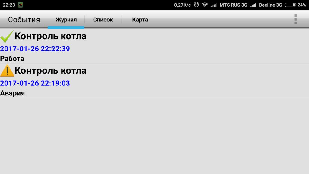 - Состояние работы котла отопления в реальном времени. Нагрев или охлаждение теплоносителя.