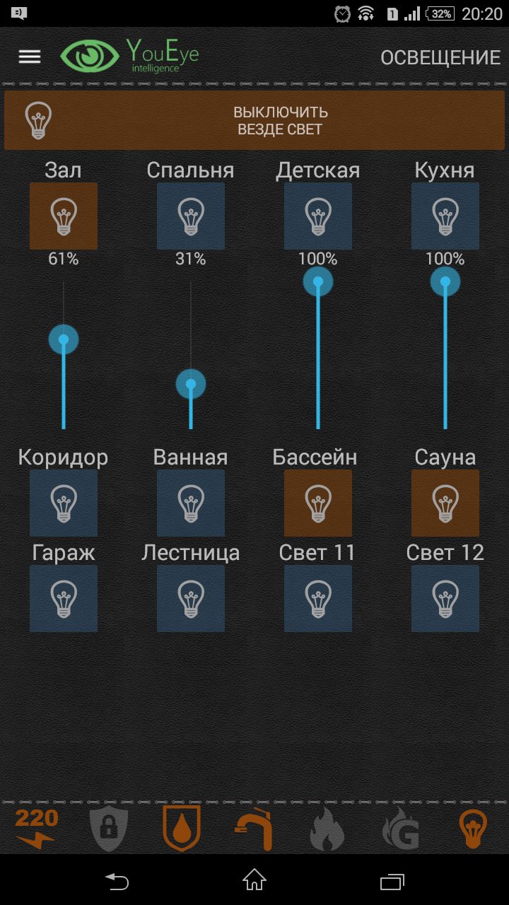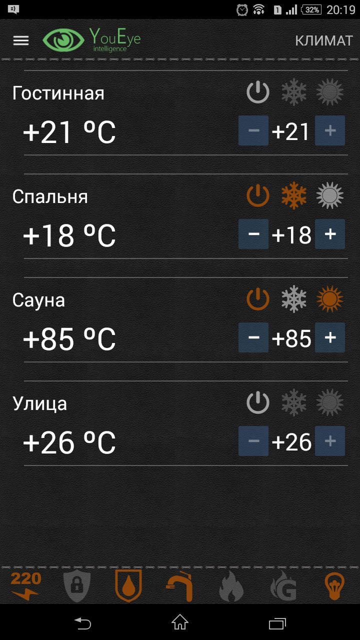 Система «Умного дома» построена на базе оборудования автоматизации ОВЕН. Система решает практически все основные задачи по управлению и мониторингу инженерными системами дома. Управление и мониторинг производится с помощью любых мобильных устройств под OC Android. Скачать мобильное приложение и узнать возможности управления вы можете скачав мобильное приложение через Play market. Название приложения «Умный дом YouEye». Мобильное приложение позволяет с легкостью управлять домом даже при низкой скорости интернета. Наша система с легкостью интегрируется под Ваш дом или квартиру.