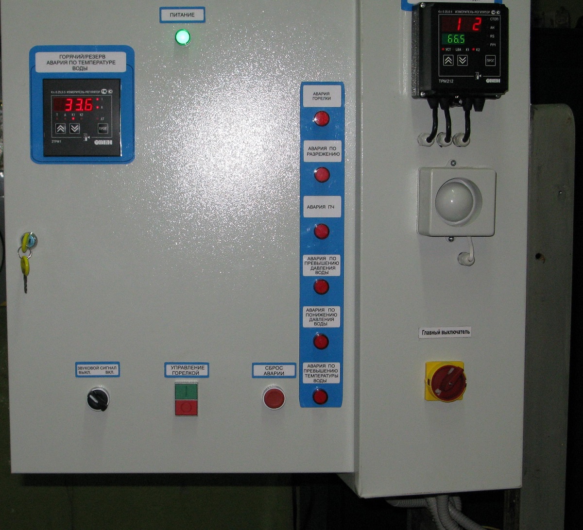 Щит изготовлен для управления водогрейным котлом, работающим под разрежением марки «Факел 1г» (КСВа — 1Гн), тепловой мощностью 1,0 МВт; оборудованный горелкой CIB UNIGAS P65. с прогрессивным регулированием. При использовании данного щита горелка работает в модуляционном режиме.