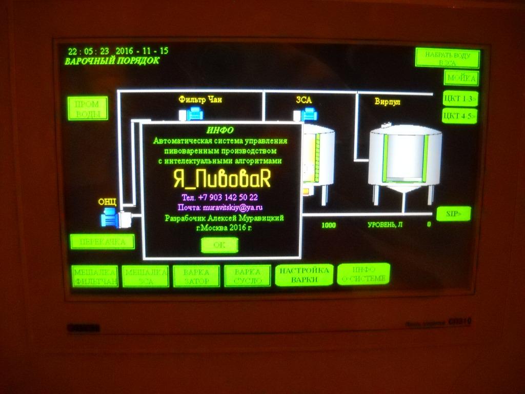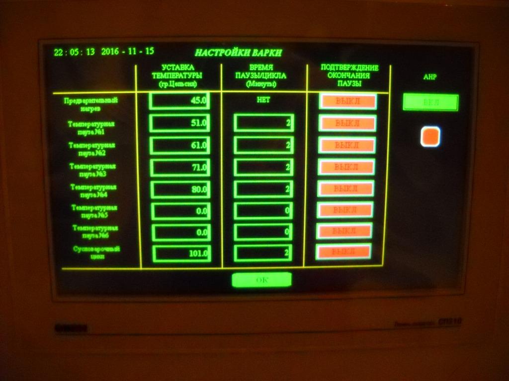 - оповещение персонала о готовности к началу варки (функция засыпи солода предусмотрена на перспективу).