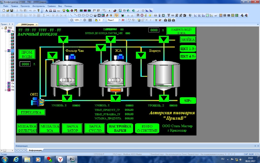 На базе оборудования ОВЕН разработана система автоматического управления процессом варки, перекачки, мойки, брожения и дображивания крафтового пива. Задача системы: варить пиво 24 часа/7 дней, минимизировать присутствие пивовара при производственном процессе (только присутствие помощника пивовара), исключить ошибки, получать информацию о процессе удалено для пивовара и директора.