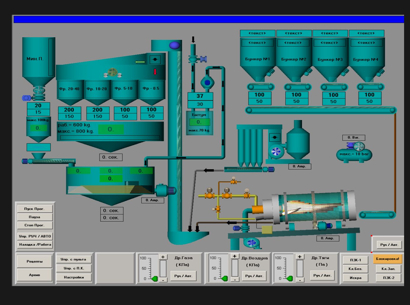 Задача модернизации: переход существующих заводов ДС-117, ДС-158, Тельтомат 100 на современную ступень технической оснащённости, полностью соответствующей европейским аналогам. После модернизации заводы способны выпускать все виды асфальтобетонных смесей согласно требований Технического Регламента Таможенного Союза «Безопасность автомобильных дорог». Все системы выполнены на базе оборудования ОВЕН.