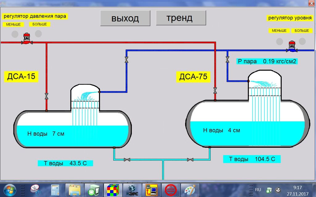 В задачу проекта входило модернизировать существующую систему автоматизации деаэраторов (использовались приборы КСД-1, регуляторы Р25, сигнализация выполнена на реле). Было принято решение за основу взять оборудование компании ОВЕН, так как продукция ОВЕН уже несколько лет работает на нашем предприятии, и соотношение цена/качество является приемлемым.