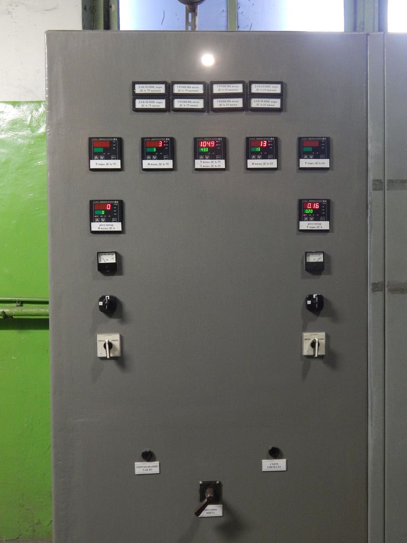В качестве показывающих приборов были выбраны ОВЕН ТРМ202, в качестве регуляторов – ОВЕН ТРМ212, регистрация осуществляется с помощью модуля сбора данных ОВЕН МСД200, система сигнализации выполнена на базе программируемого реле ОВЕН ПР110, диспетчеризация – через MasterSCADA.
