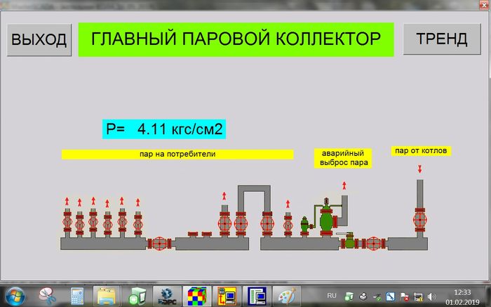В качестве показывающих приборов были выбраны ОВЕН ТРМ202, в качестве регуляторов – ОВЕН ТРМ212, система сигнализации выполнена на базе программируемого реле ОВЕН ПР110, диспетчеризация – через MasterSCADA. Дополнительно на щит выведено управление главным паровым коллектором на базе ОВЕН ТРМ212.