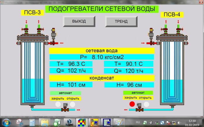В задачу проекта входила модернизация существующей системы автоматизации подогревателей сетевой воды, в которой ранее использовались приборы КСД-1, КСД-2, КСМ, регуляторы Р25, а сигнализация выполнена на реле. При модернизации было принято решение за основу взять оборудование компании ОВЕН, так как продукция ОВЕН уже несколько лет работает на нашем предприятии, и соотношение цена/качество является приемлемым.