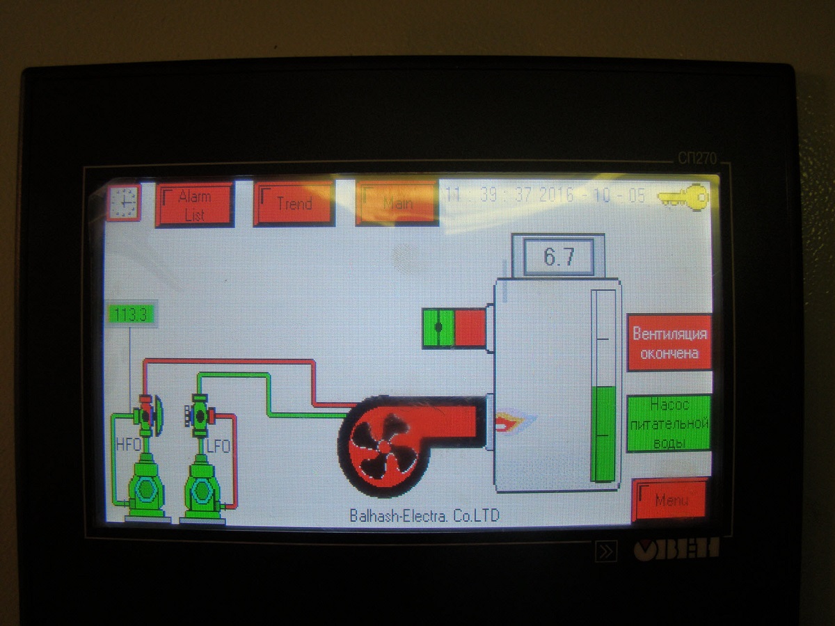 - Графическое отображения процессов розжига, работы и остановки котла на графической панели ОВЕН СП207.