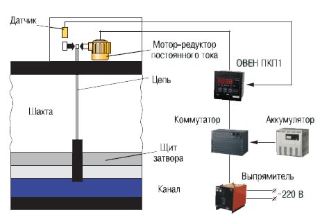 Применение электроприводов постоянного тока связано с тем, что при пропадании напряжения сети для аварийного питания электроприводов применяются аккумуляторы (рис. 6). Приборы ОВЕН ПКП1Т и ПКП1И позволяют не только значительно снизить выход из строя дорогостоящего оборудования, но и обеспечивают удобство в работе обслуживающего персонала станций и пунктов, а также контроль и управление задвижками и затворами в составе автоматизированных систем управления объектами.