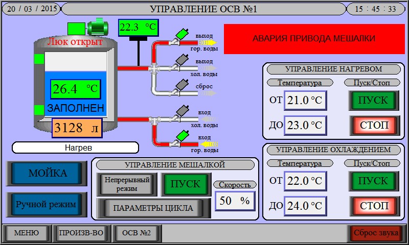 Организацией ООО «АСИНТЕК» разрабатываются и реализуются объединенные пульты управления несколькими емкостями типа ОСВ, ОХР, ОМГ.