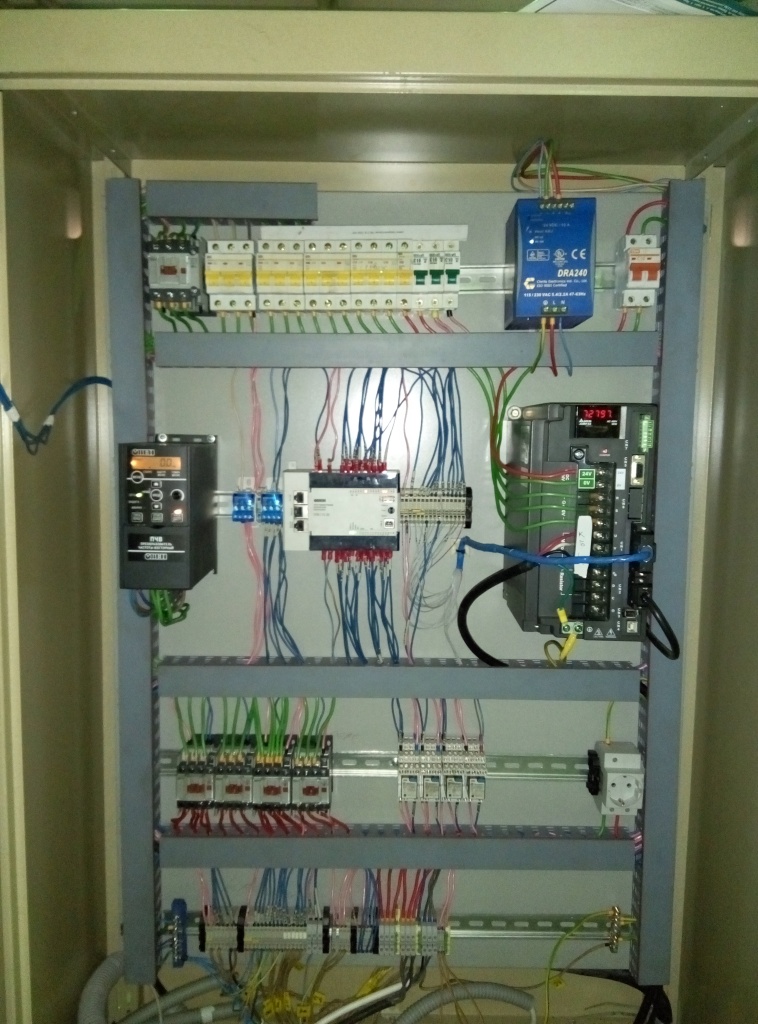 Для обеспечения точности и повторяемости параметров волны был применен сервопривод DELTA ASDA-A2. Связка: логический контроллер ОВЕН ПЛК110-30[М02] и DELTA ASDA-A2 смогла реализовать точные требования технологического процесса, а также полное автоматическое управления всеми узлами машины: управление прессом, управление входными и выходными рольгангами, управление подающими валами. В системе применен частотный преобразователь ОВЕН ПЧВ2 на 1,5 кВт. ПЧВ управляет выходными рольгангами. Выходные рольганги вращаются с той же скоростью, что и подающие от сервопривода. Система предусматривает два режима работы, автоматический и ручной.