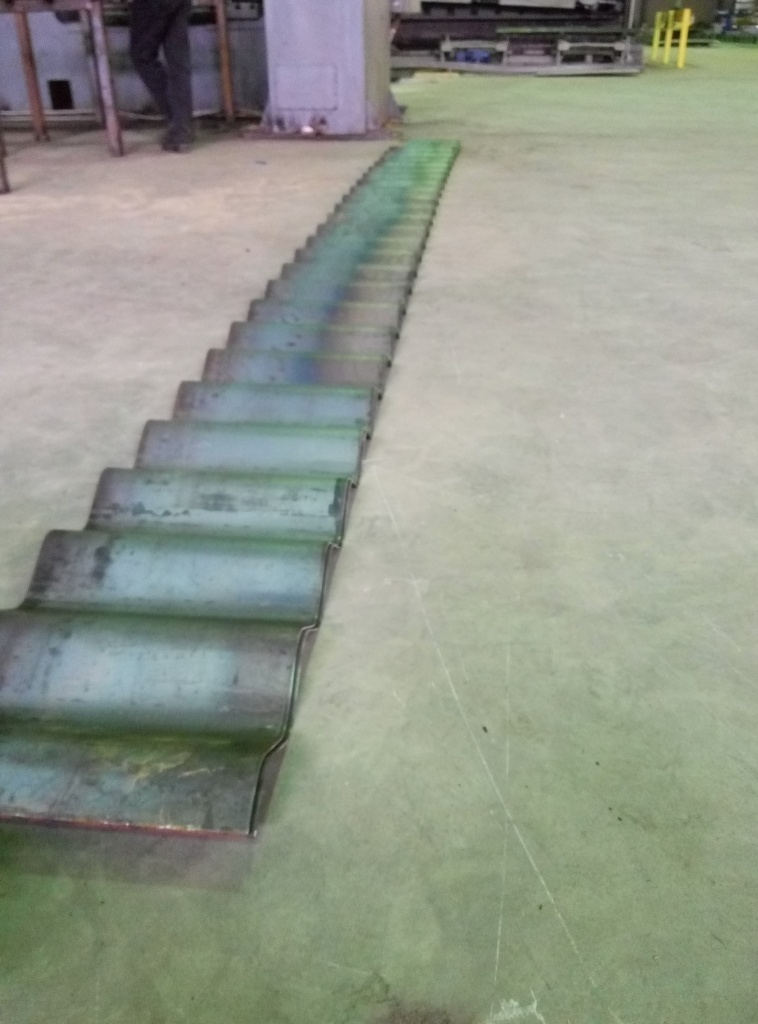 Заготовками служат нарубленные полосы металла требуемой ширины и толщины. Гофрирование листа происходит при помощи гидравлического пресса. Заготовка в автоматическом режиме протягивается контролируемыми шагами через матрицу пресса. На выходе получается гофрированный лист с требуемыми параметрами волны.