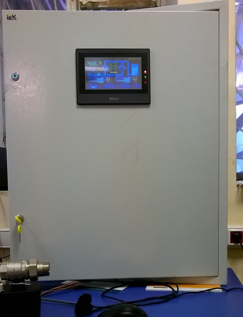 Программно-аппаратный комплекс защиты и управления насосными агрегатами обеспечивает автоматическое управление двумя электродвигателями насосов с частотным регулированием по заданному алгоритму с электронной и программной защитой электродвигателей насосов. Местное управление. Удаленное управление посредством SCADA систем по локальной сети или сети Интернет.