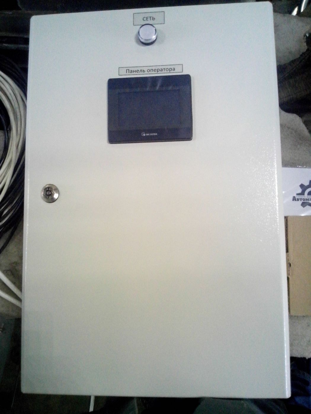 Основой пульта управления является программируемое реле ОВЕН ПР114 с панелью оператора Weintek MT6050iH. Для контроля уровня воды в емкости заквасочника используется кондуктометрический датчик ДС.1 совместно с сигнализатором уровня САУ-М6. Контроль температуры продукта и воды в емкости заквасочника осуществляется с помощью термопреобразователей с унифицированным выходным сигналом тока.