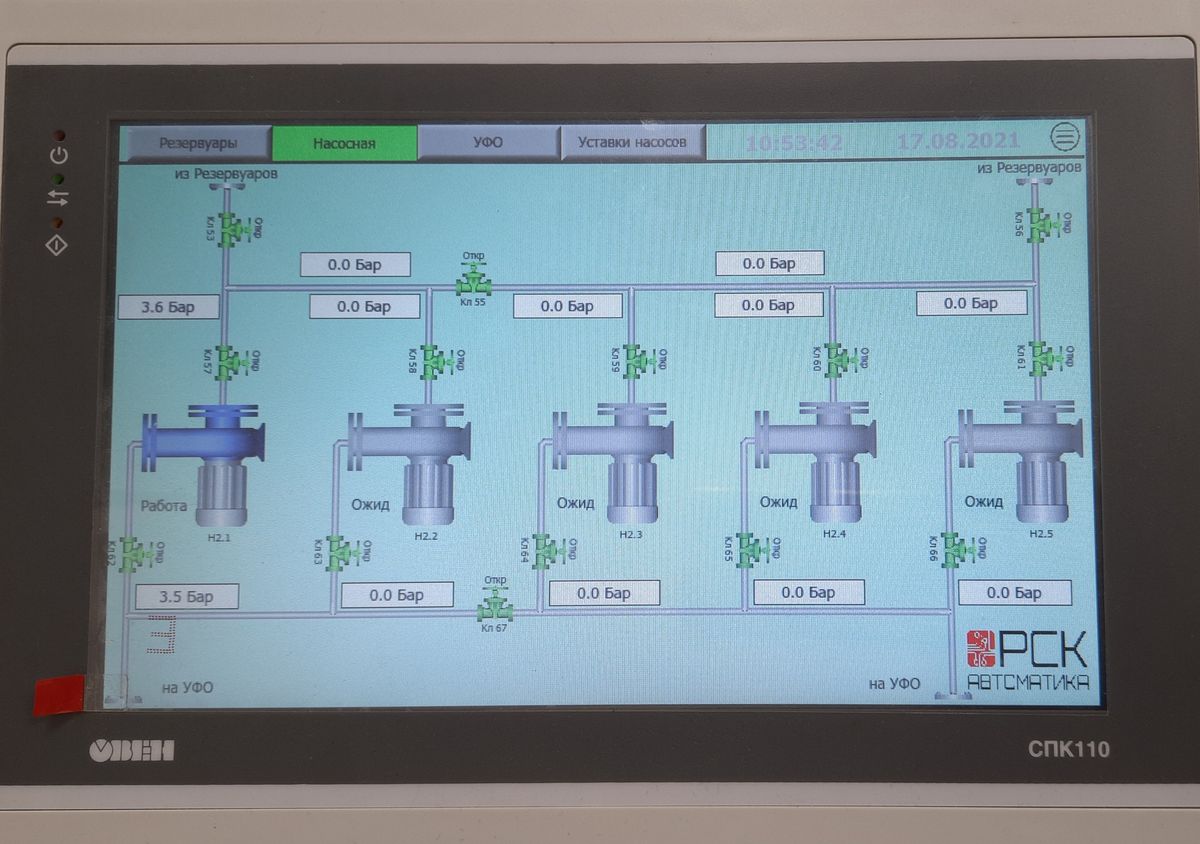 Компанией «РСК Автоматика» (г. Калининград) на базе оборудования ОВЕН спроектирована и реализована система автоматического управления процесса водозабора, водоподготовки и распределения воды. Разрабатываемая система предназначена для контроля и управления в реальном масштабе времени технологическими процессами и водозаборными сооружениями.
