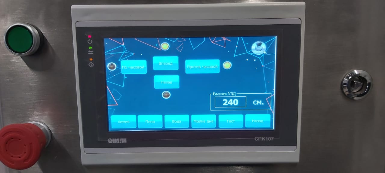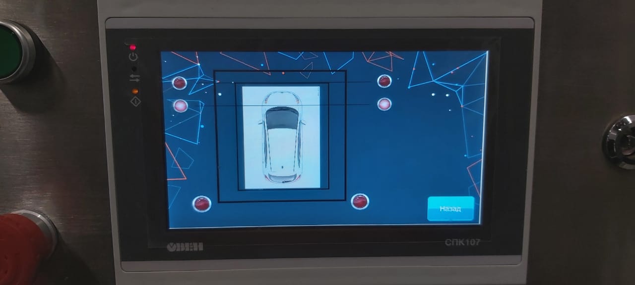 - При пересечении вьездных датчиков начинает свою работу «мойка шасси» на заданное количество времени.