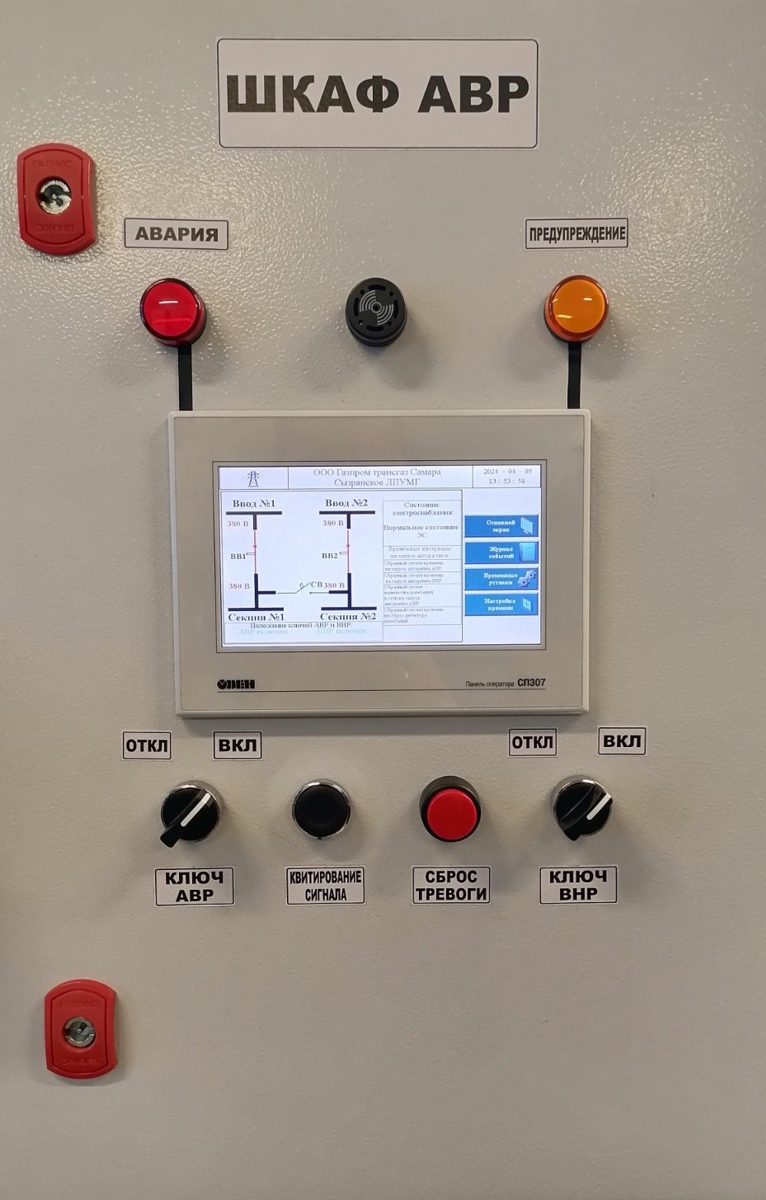 В Сызрани на базе оборудования от ОВЕН был изготовлен шкаф управления автоматического ввода резерва с визуализацией и возможностью записи событий для российской компании, специализирующейся на транспортировке газа, — нашим партнером стал «Газпром трансгаз Самара Сызранское ЛПУМГ». Сызранское ЛПУМГ обслуживает клиентов в Сызрани, Жигулёвске, Октябрьске, Сызранском и Шигонском районах Самарской области, а также в Новоспасском и частично в Радищевском районах Ульяновской области.