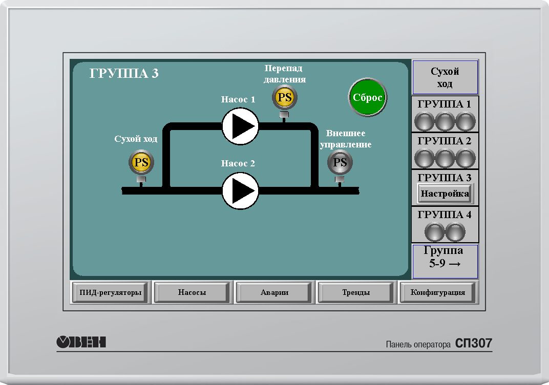 - Вывод аварий и журнала аварийных сообщений на панель оператора.