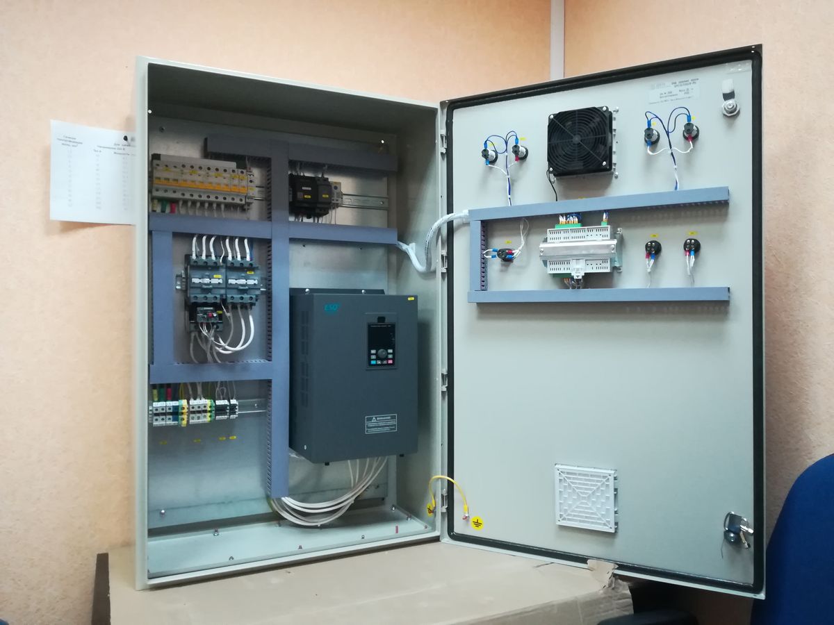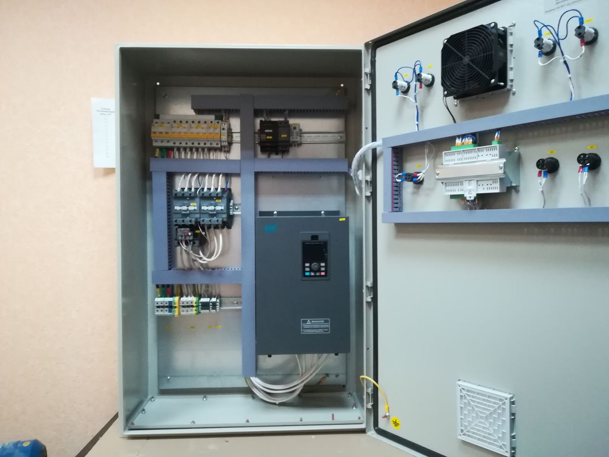 Шкаф управления насосом повышения давления предназначен для поддержания давления воды в трубопроводе, посредством управления интенсивностью работы насоса через преобразователь частоты. Шкаф управления также предназначен для контроля и обработки аварийных ситуаций в работе системы.