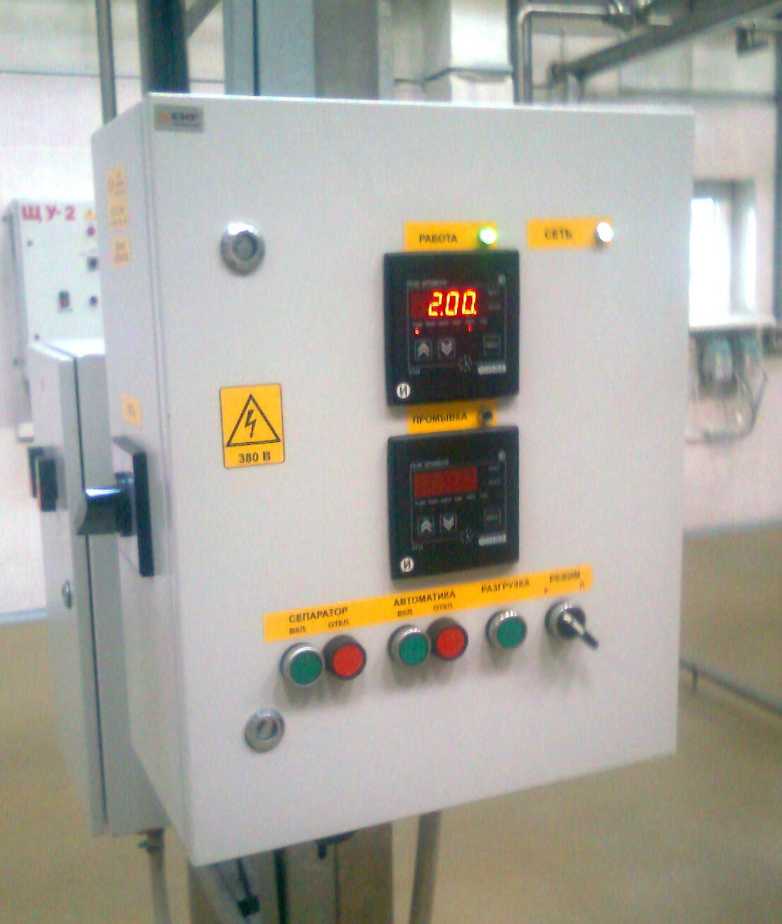Шкаф управления В2-ОСН-С.07.000 предназначен для управления приводом и автоматического управления циклом работы ( по времени) соморазгружающего сепаратора с частичной выгрузкой осадка при непрерывном сепарировании и безразборной промывке барабана,обеспечивания автоматическое управления.