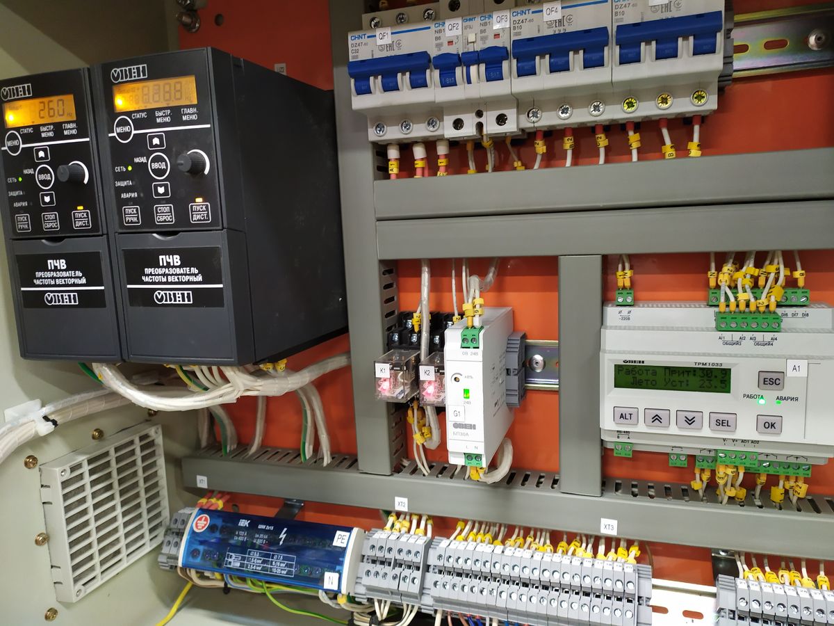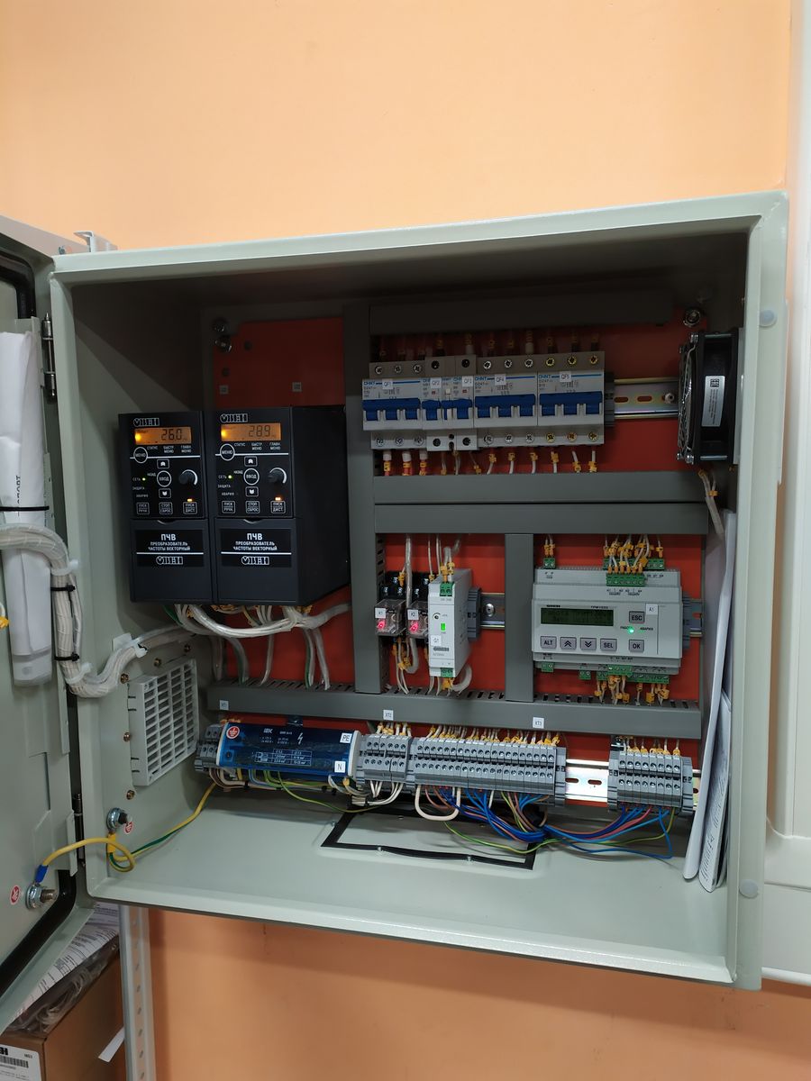 Электродвигатели приточной и вытяжной вентиляции управляются и защищаются при помощи преобразователей частоты ОВЕН ПЧВ.