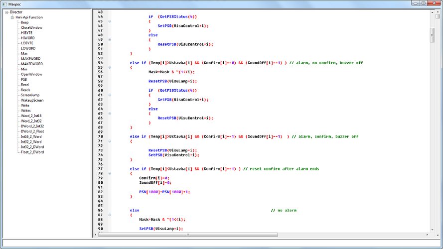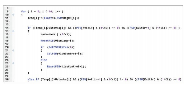 трюмов. Панель СП307 служит не только для визуализации состояния оборудования, но и для управления. Панель располагает относительно простым алгоритмом с поддержкой скриптов (макросов). Алгоритм управления звуковой сигнализацией реализован с помощью макросов на языке С (рис. 2).
