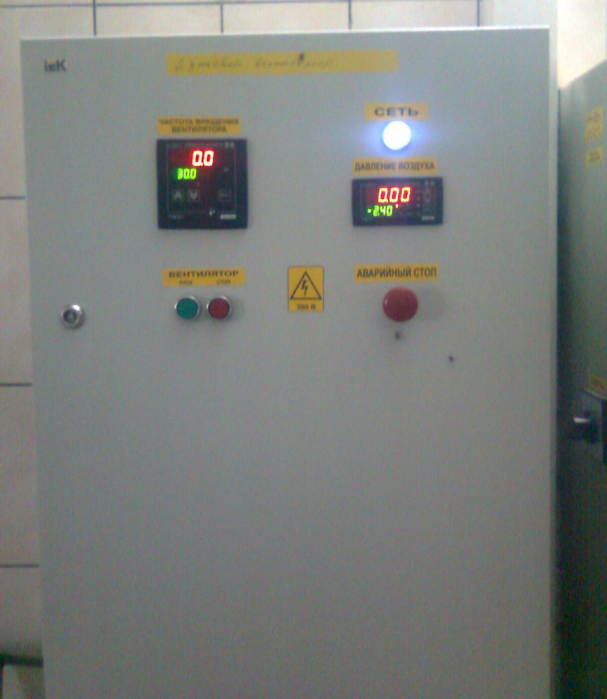 При внедрении системы в линии дутьевого и вытяжного вентиляторов установлен измерительный преобразователь давления. Данные от измерительного преобразователя давления поступают на вход ПИД-регулятора ОВЕН ТРМ210, который поддерживает необходимое давление в камере сушки казеина с помощью преобразователей частоты ОВЕН ПЧВ3. С помощью измерителя-регулятора одноканального ОВЕН ТРМ201 контролируется частота вращения приводов дутьевого и вытяжного вентиляторов.