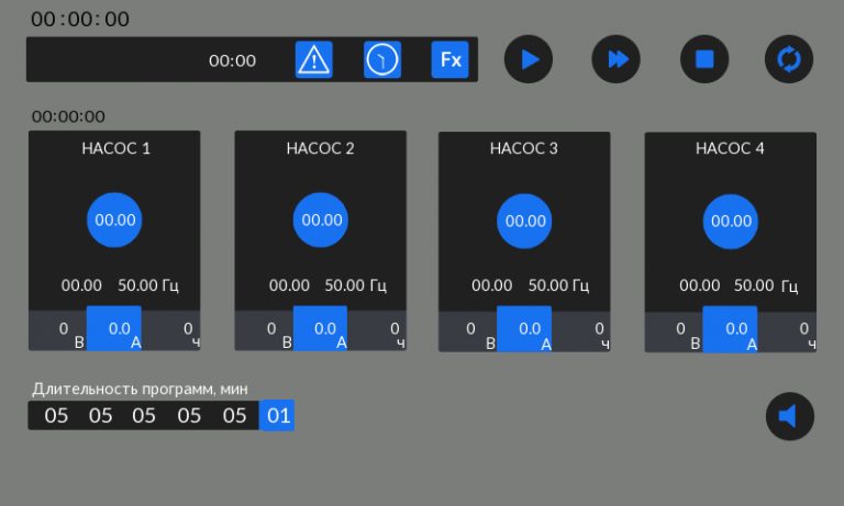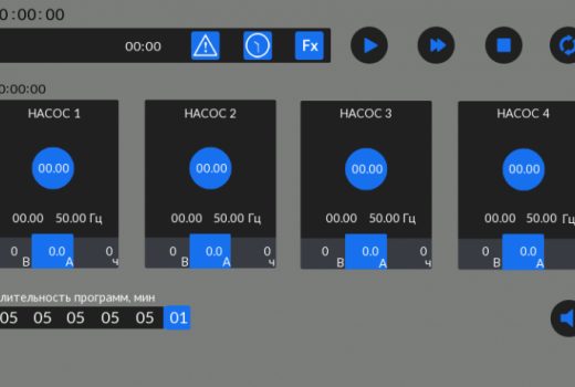 Система автоматического управления фонтаном предназначена для управления частотой питающего напряжения насосов, регулирующих выпуск воды форсунками по заданным сценариям (программам) и управления режимами цветовой подсветки. Временные интервалы выполняются строго последовательно, по предварительно указанному началу временного интервала.