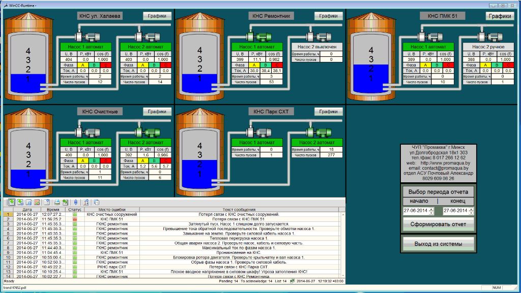 — контроль над переполнением приемного резервуара с подачей аварийного сигнала;