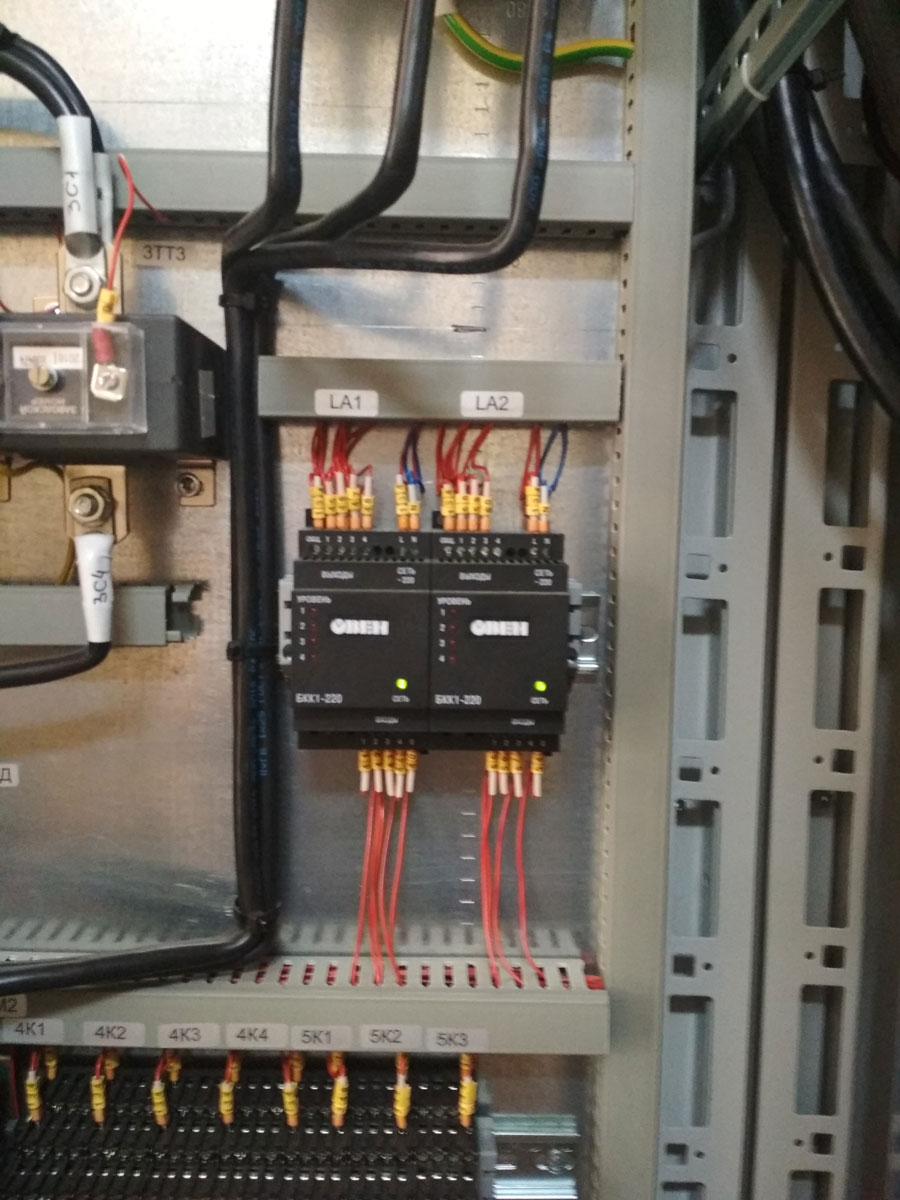В качестве кондуктометрических датчиков применяется оборудование ОВЕН: датчики ДУ.3, контролируемые посредством БКК1-220. Эти датчики контролируют уровни жидкости в приемной емкости КНС и дренажном приямке.