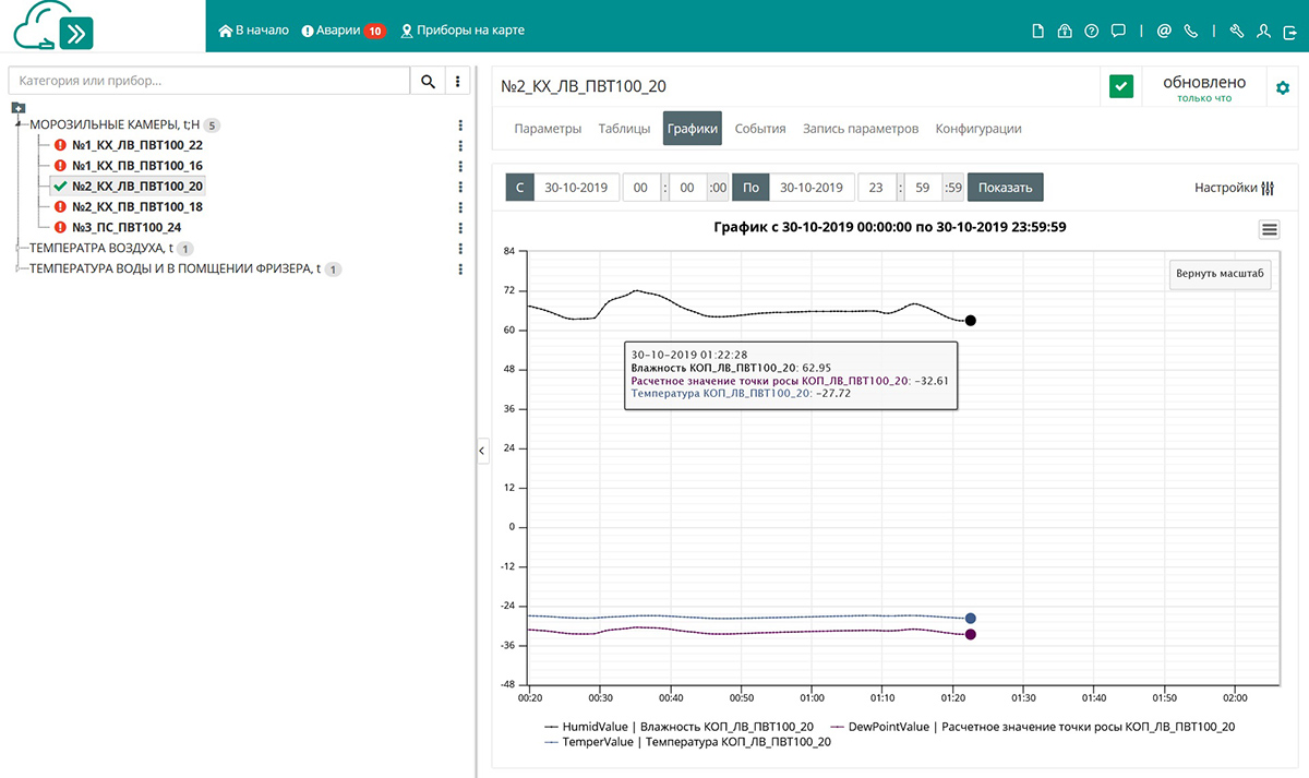 - доступ к оперативным и архивным данным в реальном времени через облачный сервис — прямо из браузера или приложения смартфона (Android, iOS), там, где есть интернет;