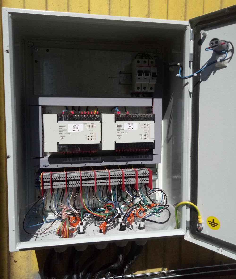 - распределённые по площадке шкафы измерения с модулями МВ110-224.4ТД для снятия показаний с тензодатчиков;