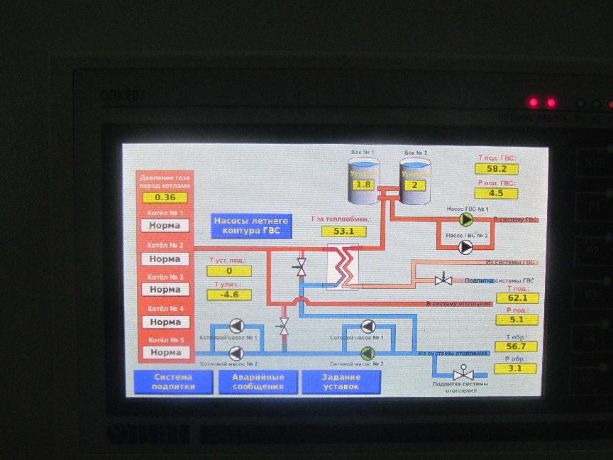 - Сбор и передачу данных параметров работы котельной на вышестоящий уровень (SCADA).